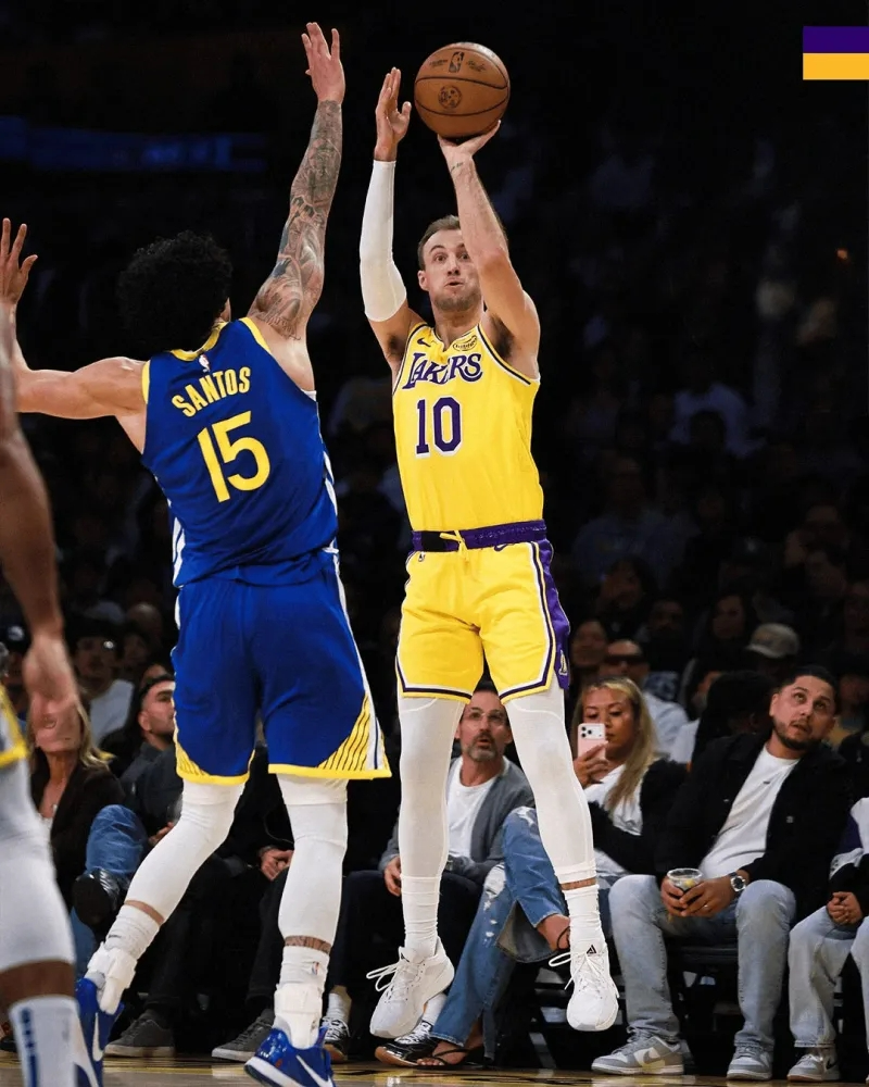 更离谱的是,他在湖人的投篮环境其实更差了。来湖人之前,他在老鹰的大空位三分出手占比39.6%,来之后降到24.1%。球权少了,防守压力大了,命中率反而更高了。